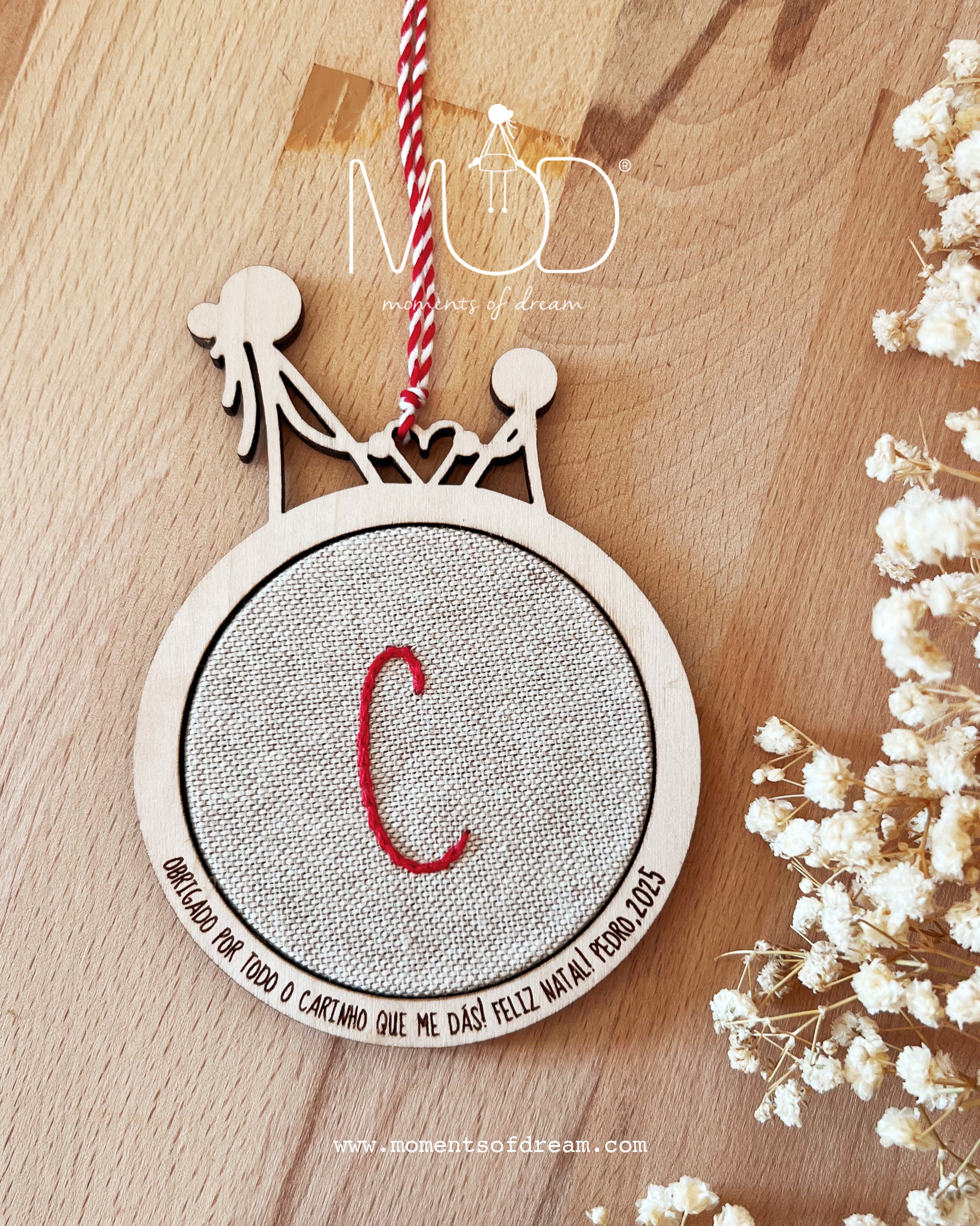 - Inicial bordada à mão